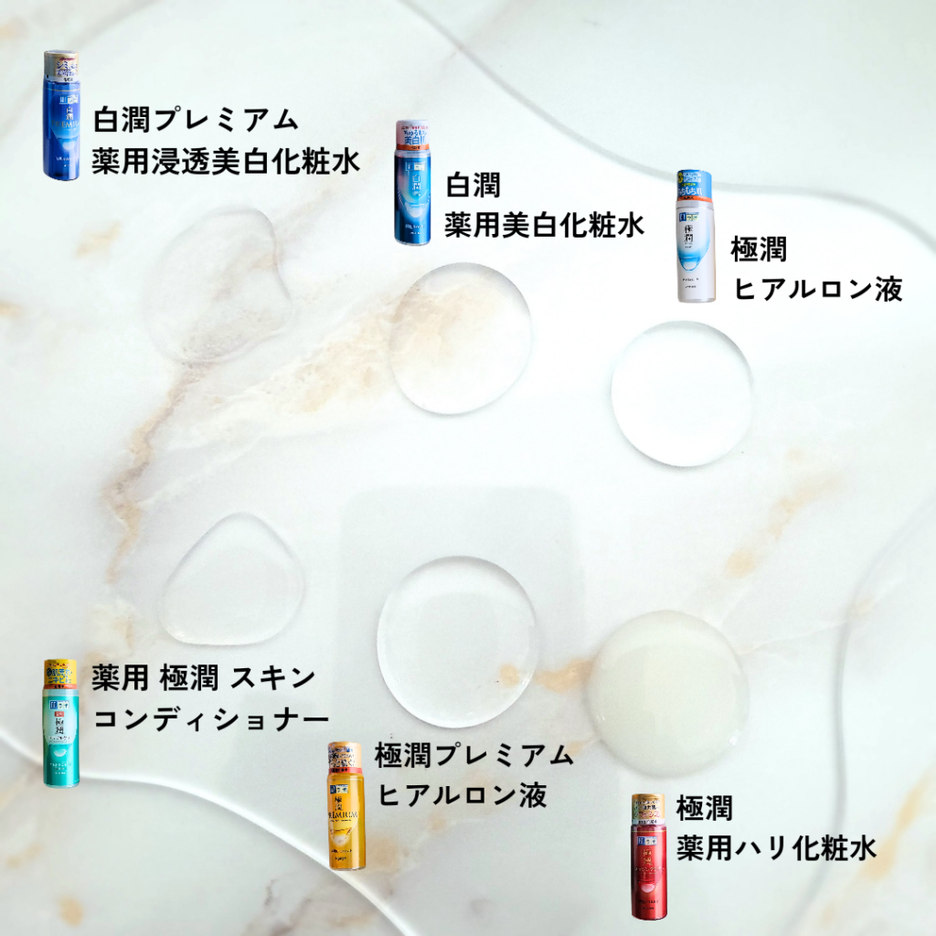 とろみがあり重めなテクスチャーが好きな方は、❣️【極潤 薬用ハリ化粧水】と💛【極潤プレミアム ヒアルロン酸】が良いかも。