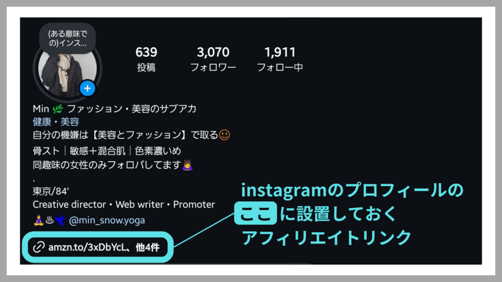 インスタを収益化する方法③プロフィールにアフィリエイトのリンクを常設する