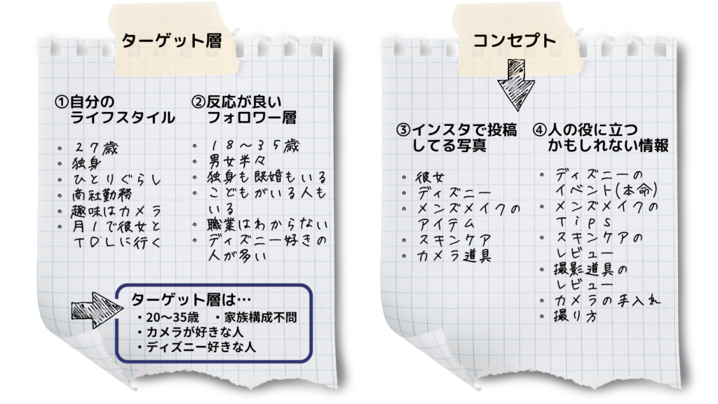 ポイントは、リアルな自分のライフスタイルではなく、インスタで出している人格のライフスタイルを書き出すこと。